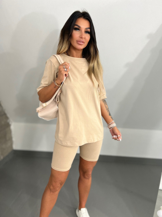 Bawełniany komplet ROSS | beż | t-shirt+krótkie spodenki | rozmiar uniwersalny