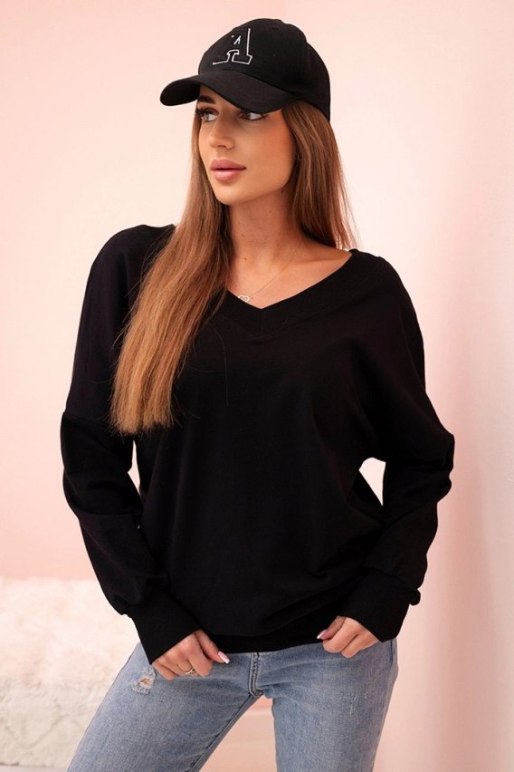 Bluza damska z długim rękawem i dekoltem w serek czarna