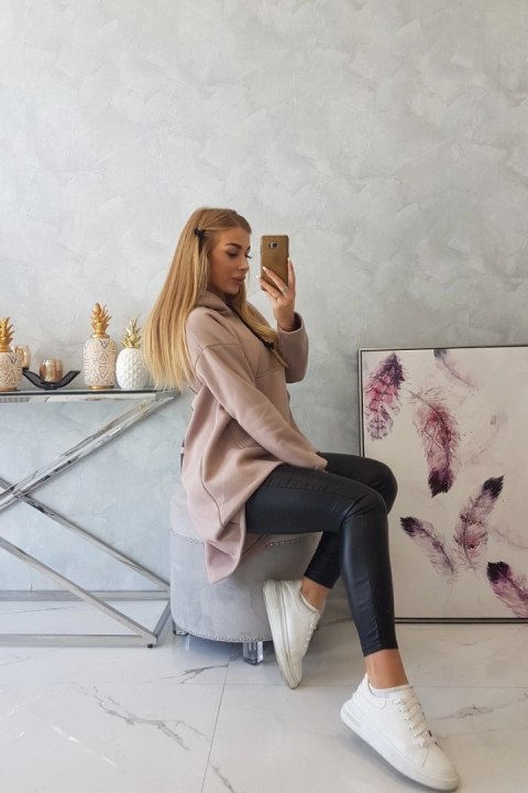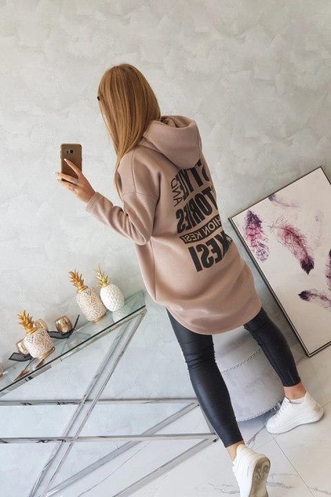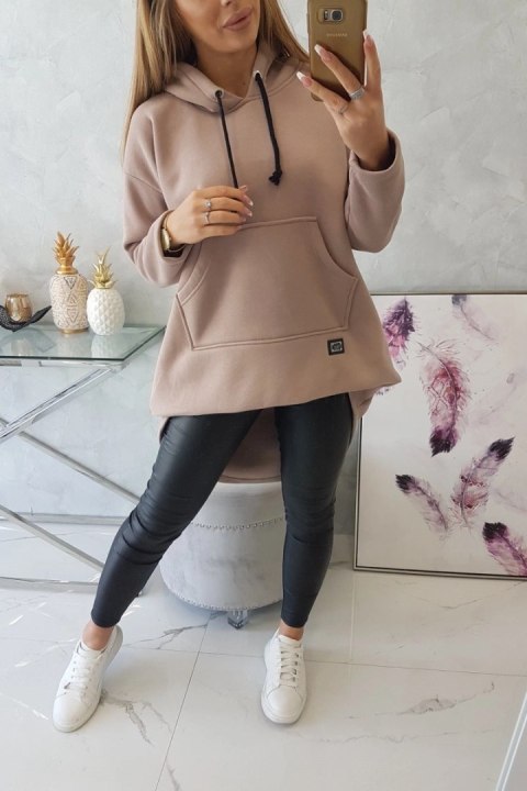 Bluza ocieplana z długim tyłem i kapturem ciemny beżowy