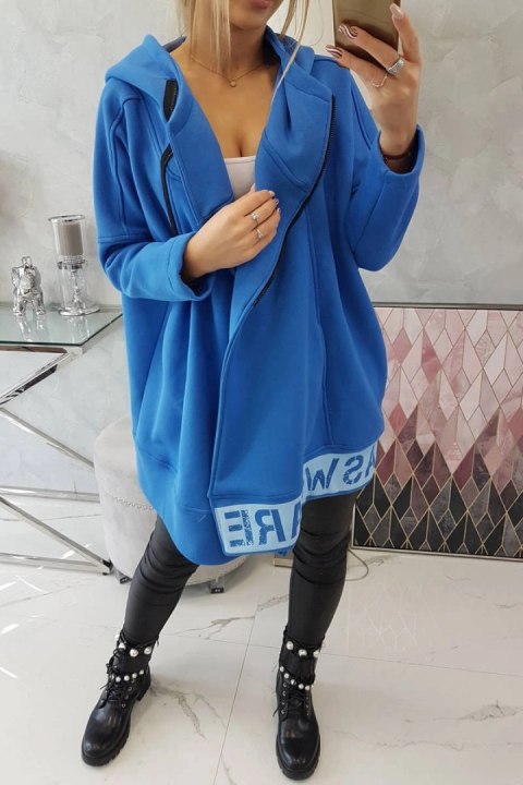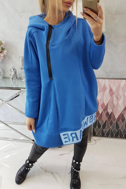 Prezentujemy Państwu ciepłą bluzę. Bluza posiada kaptur oraz asymetryczny suwak. U dołu bluzy znajduje się nadruk. Bluza z kieszeniami. Bluza wykonana jest z ocieplanego materiału. Rozmiar jest uniwersalny i będzie odpowiedni dla Pań noszących rozmiar S, M lub L.