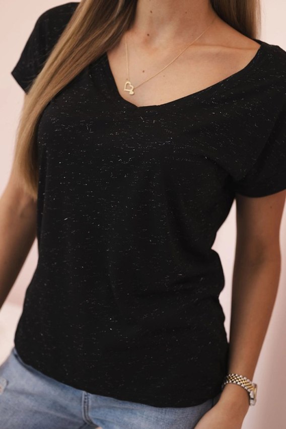 Bluzka damska bluzka bawełniana z dekoltem V i krótkim rękawem czarna