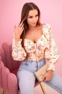Bluzka damska hiszpanka w kwiaty, długi rękaw żółta