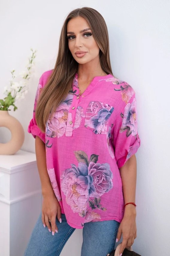 Bluzka damska z bawełny z kwiatowym wzorem różowa