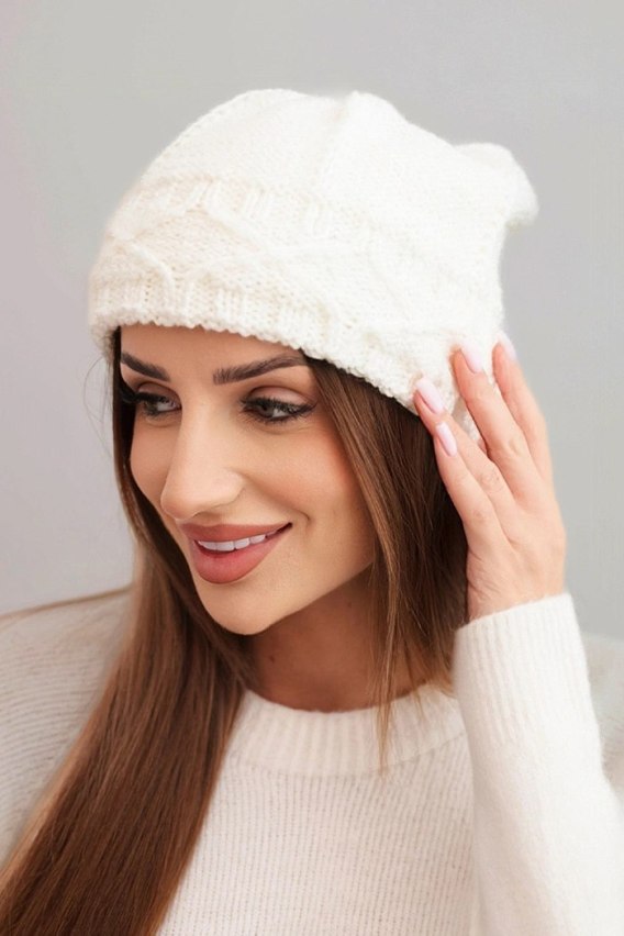 • Czapka damska zimowa z wełną o grubym splocie warkoczowym K481 ecru