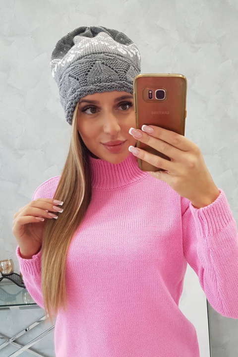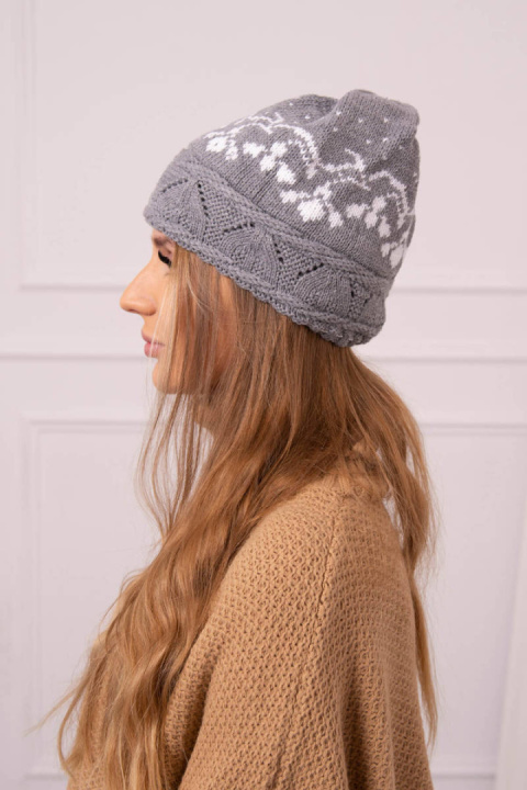 Czapka ze wzorem DEBRA jasny popiel polski produkt
