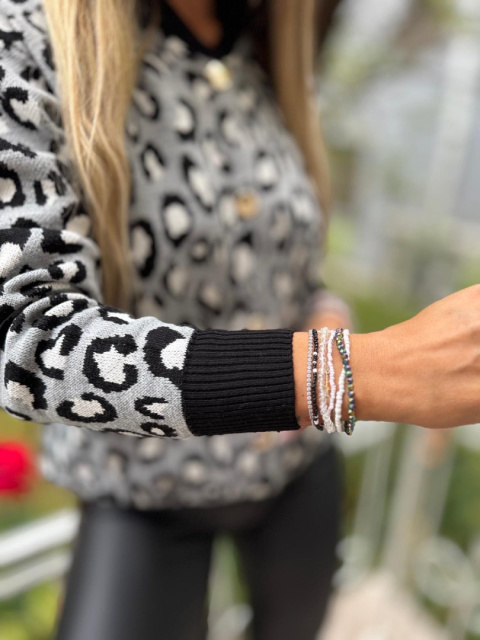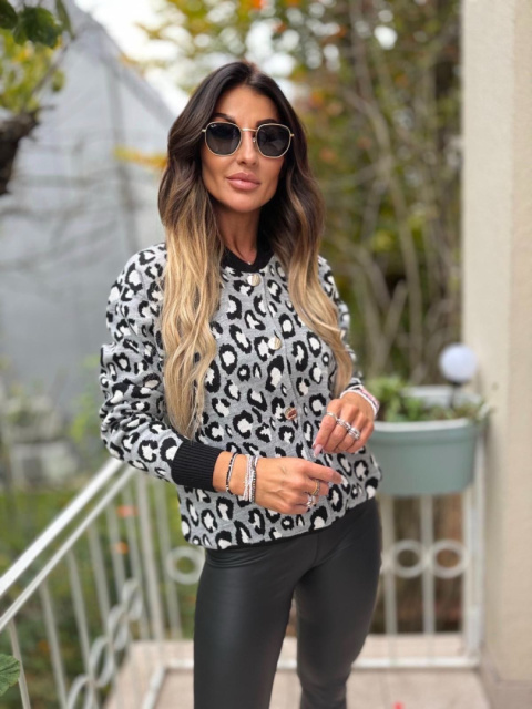 Dzianinowy Sweter WILD JUNGLE ze złotymi guzikami | szary - biały | one size