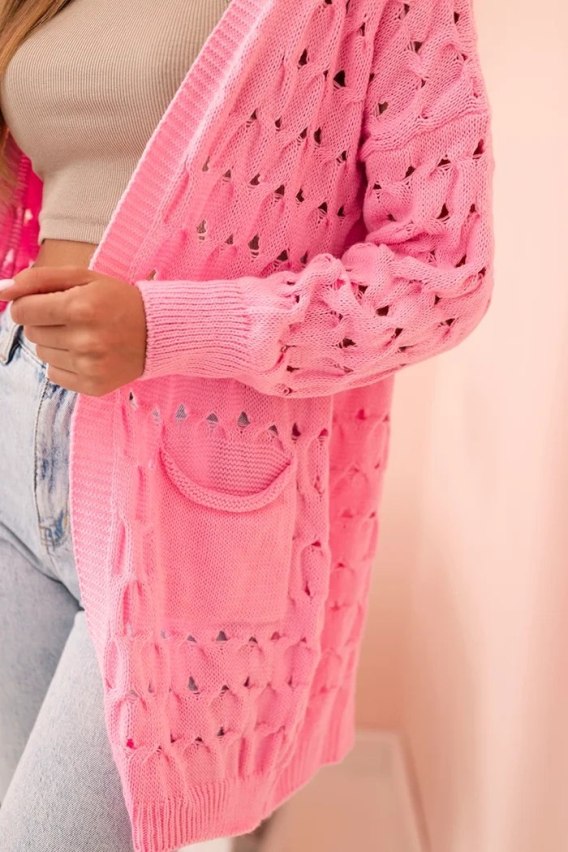Kardigan damski ażurowy z kieszeniami jasny różowy