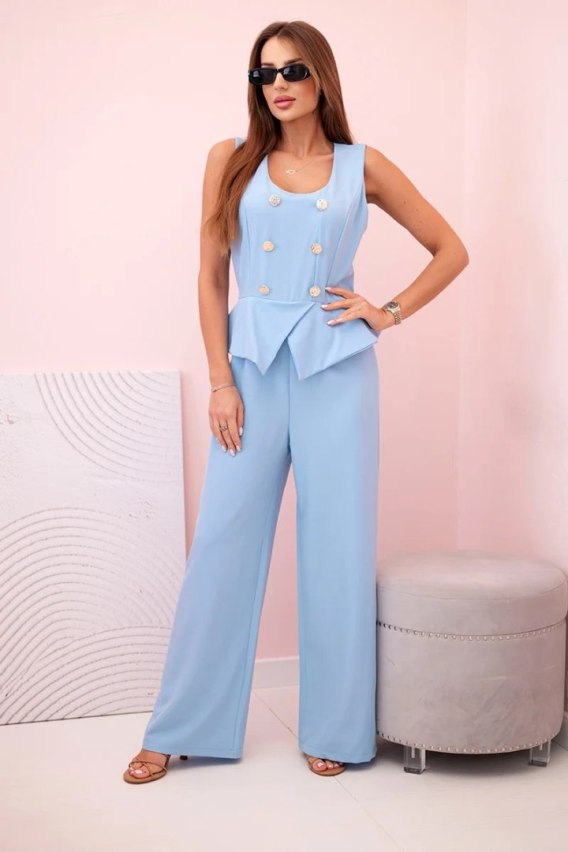 Kombinezon damski bez rękawów z szeroką nogawką i ozdobnymi guzikami niebieski
