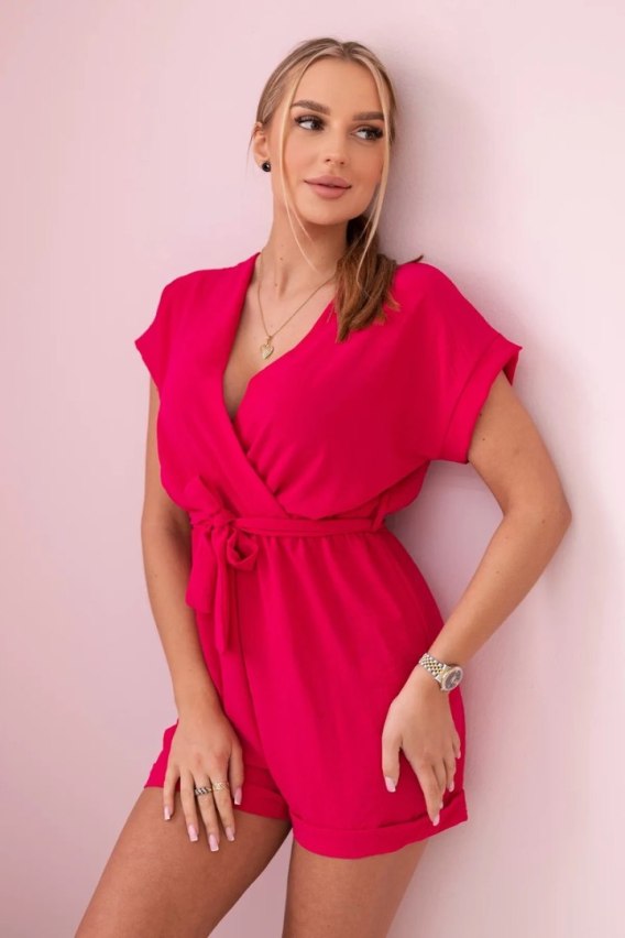 Kombinezon krótki wiązany w talii to idealne połączenie wygody i stylu na letnie dni. Wykonany z lekkiego materiału, zapewniającego komfort i swobodę ruchów, kombinezon jest doskonałym wyborem na różnorodne okazje. Jego krój pozwala na podkreślenie sylwetki, dzięki wiązaniu w talii, co dodaje mu elegancji i lekkości. Doskonały zarówno na plażę, spacer po mieście czy letnie spotkania ze znajomymi, ten kombinezon pozwoli Ci czuć się modnie i komfortowo przez cały dzień. Rozmiar jest uniwersalny i będzie pasował dla osób w rozmiarze S, M i L.