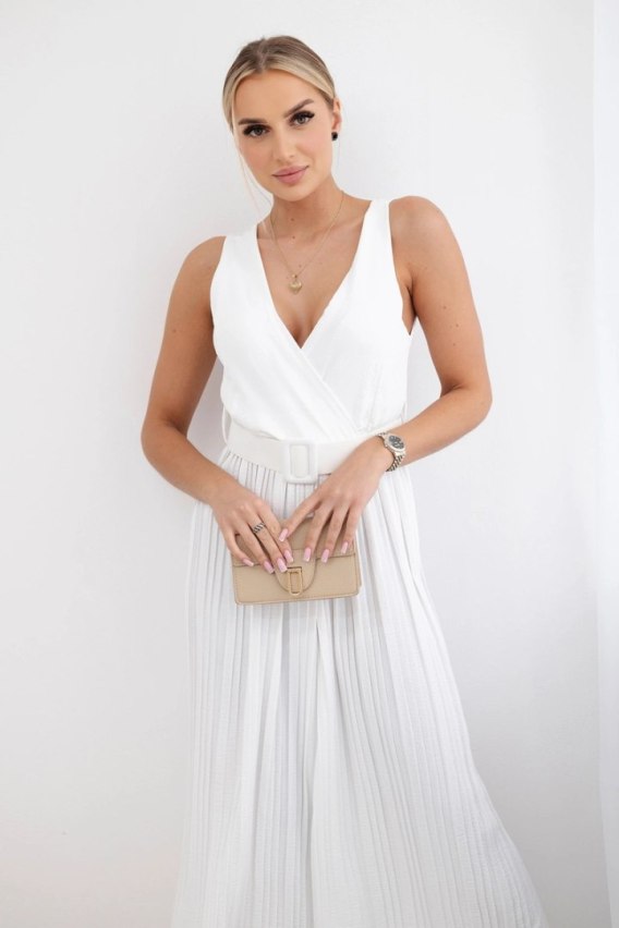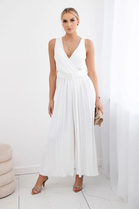 Kombinezon z wiskozy plisowany z paskiem to elegancki i wygodny wybór dla różnorodnych okazji. Wykonany z lekkiego materiału wiskozy, kombinezon zapewnia przewiewność i komfort noszenia nawet w ciepłe dni. Jego plisowany fason nadaje mu lekkości i subtelnej finezji, podczas gdy dodatkowy pasek podkreśla talię, nadając sylwetce proporcje. Doskonały zarówno na spotkania biznesowe, jak i wieczorne wyjścia, ten kombinezon jest wygodnym i eleganckim wyborem dla każdej kobiety, która ceni sobie styl i komfort. Rozmiar jest uniwersalny i będzie pasował dla osób w rozmiarze S, M i L.