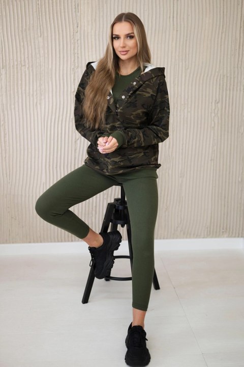 Komplet 3-częściowy moro bluza, top i legginsy brązowy + cappuccino