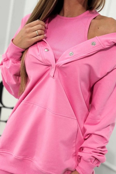 • Komplet 3 w 1 bluza, top i krótkie legginsy różowy