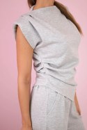 Ten wyjątkowy komplet to idealne połączenie elegancji i komfortu, które podkreśli Twój indywidualny styl. Asymetryczna bluzka zachwyca oryginalnym krojem, nadając stylizacji nowoczesnego charakteru. Jej luźny fason doskonale układa się na sylwetce, maskując ewentualne niedoskonałości i zapewniając swobodę ruchów. Spodnie, idealnie dopasowane do bluzki, posiadają wygodny krój, który gwarantuje komfort noszenia przez cały dzień. Wykonane z wysokiej jakości materiałów, świetnie układają się na ciele i pasują zarówno do codziennych, jak i bardziej eleganckich stylizacji. Komplet asymetryczna bluzka + spodnie to doskonały wybór dla kobiet, które cenią sobie niebanalne fasony i chcą wyglądać stylowo w każdej sytuacji. Idealny zarówno do pracy, na spotkania, jak i na wyjątkowe okazje - stwórz niepowtarzalny look, który wyróżni Cię z tłumu. Rozmiar jest uniwersalny i pasuje dla kobiet noszących rozmiar S, M lub L.