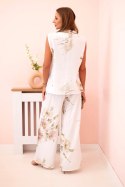 Komplet damska z wiskozy kamizelka i spodnie w kwiaty biały