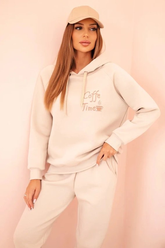 • Komplet damski bawełniany ocieplany z nadrukiem beżowy