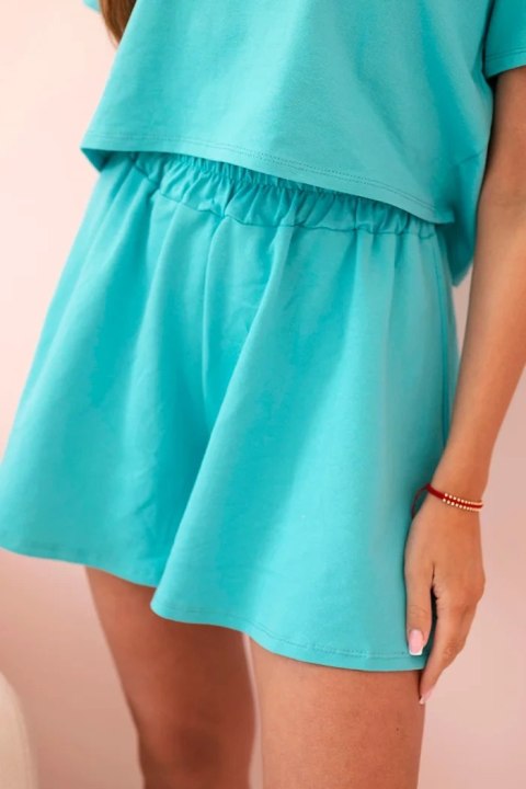 Komplet damski bawełniany z szerokimi szortami jasny miętowy