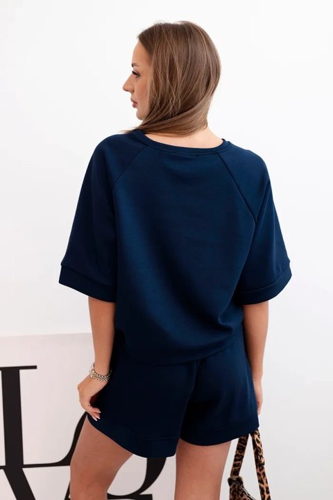 Komplet damski masełko z bluzka z krótkim rękawem i spodenki z gumką granatowy