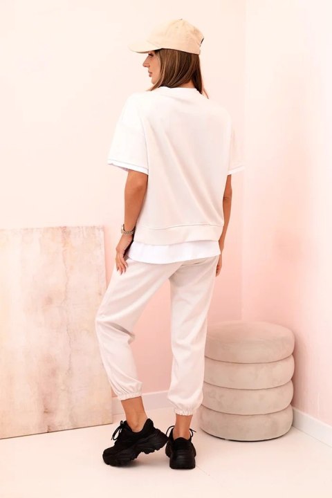 Komplet damski masełko z krótkim rękawem i spodniami beżowy