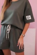 Komplet damski masełko z szortami z wysokim stanem khaki