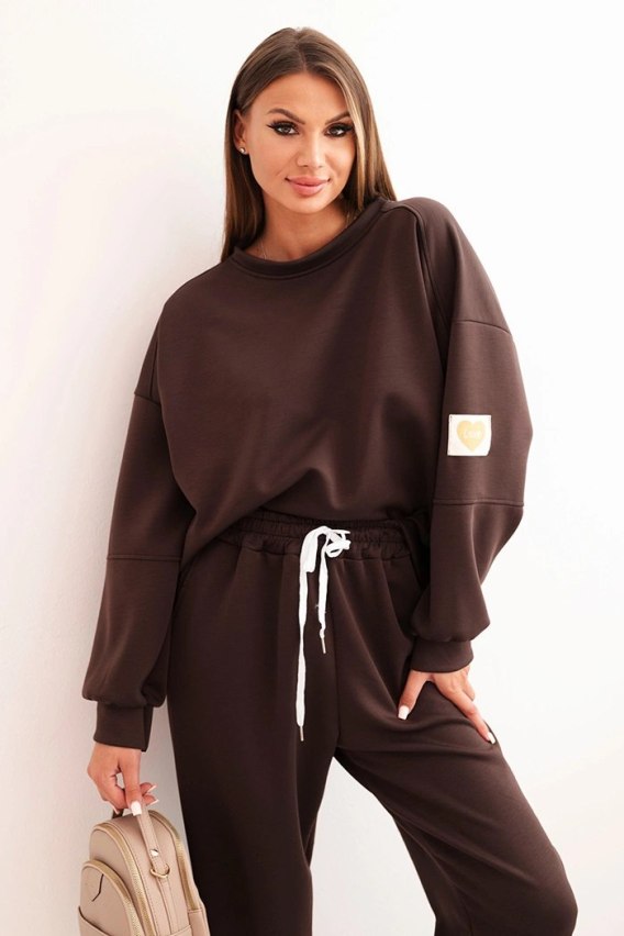 Komplet damski masełkowy z luźną bluzą i spodniami z napisem LOVE brązowy