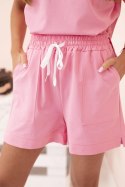 Komplet damski punto z krótkim rękawem i szortami jasny różowy