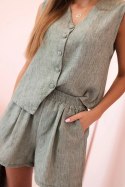 Komplet damski wiskozowy kamizelka na guziki i szorty khaki melanż