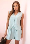 Komplet damski wiskozowy kamizelka na guziki i szorty miętowy melanż