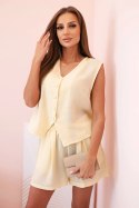 Komplet damski wiskozowy kamizelka na guziki i szorty żółty melanż