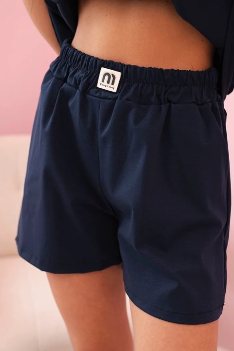 • Komplet damski z falbanką - bluzka z krótkim rękawem i szorty z gumką granatowy