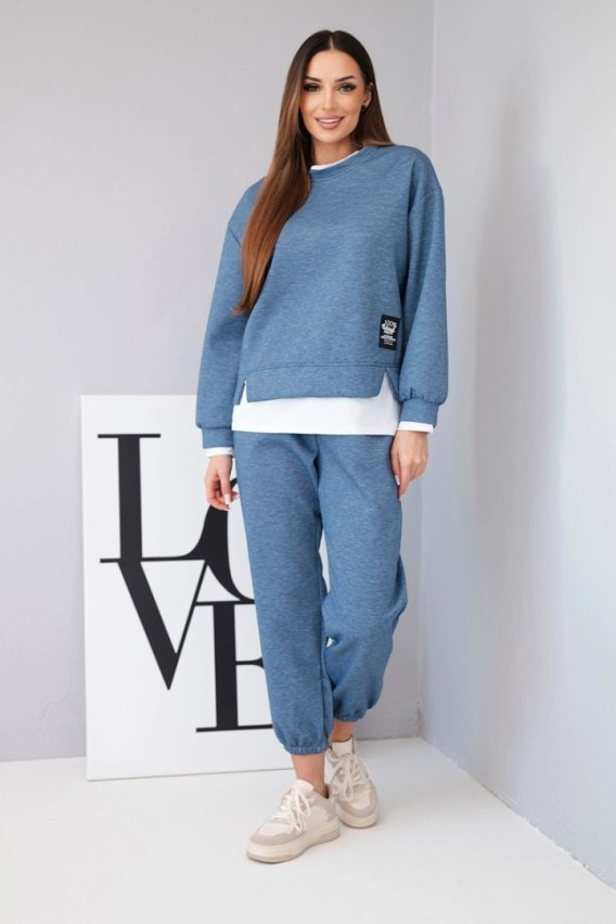 Komplet damski z masełkowy z luźną bluzą i spodniami dresowymi jeansowy melanż