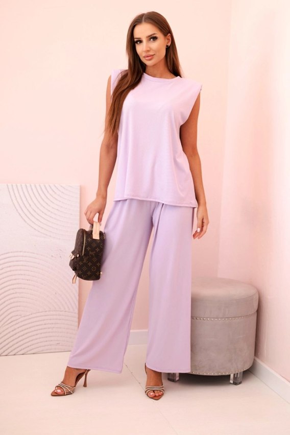 Komplet damski z wiskozy bez rękawów i prostymi spodniami jasny fioletowy