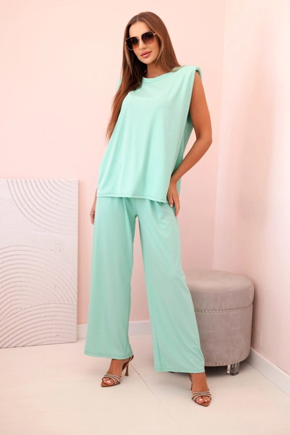 • Komplet damski z wiskozy bez rękawów i prostymi spodniami miętowy