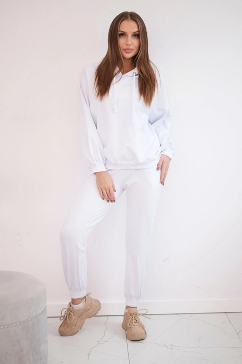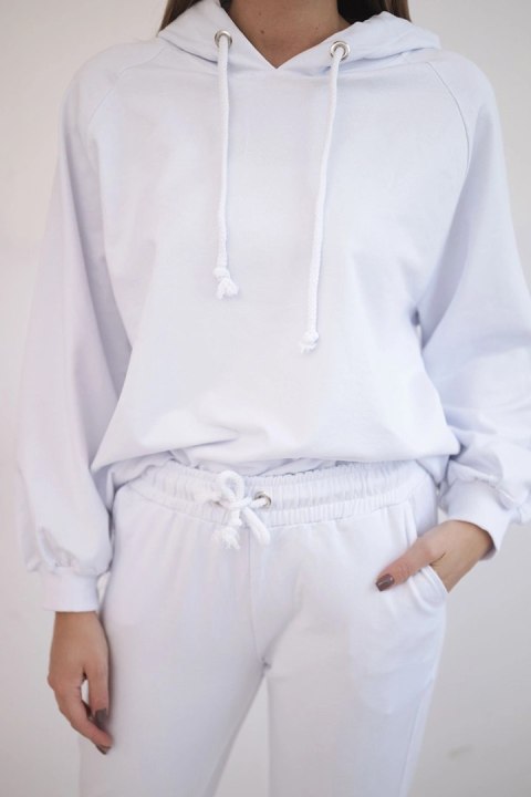 Prezentujemy Państwu komplet bluzy i spodni. Bluza z kapturem gładka bez nadruków. Spodnie z kieszeniami i wiązaniem w pasie. Komplet wykonany jest z wysokiej jakości materiału. Rozmiar jest uniwersalny i będzie odpowiedni dla Pań w rozmiarze S, M lub L.