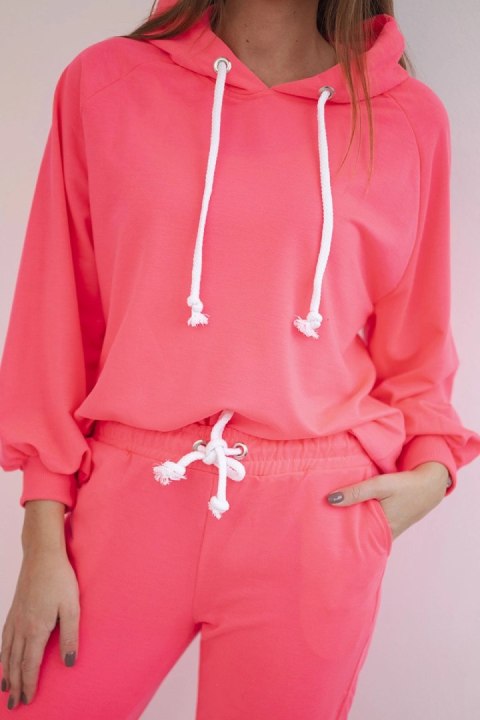 Prezentujemy Państwu komplet bluzy i spodni. Bluza z kapturem gładka bez nadruków. Spodnie z kieszeniami i wiązaniem w pasie. Komplet wykonany jest z wysokiej jakości materiału. Rozmiar jest uniwersalny i będzie odpowiedni dla Pań w rozmiarze S, M lub L.
