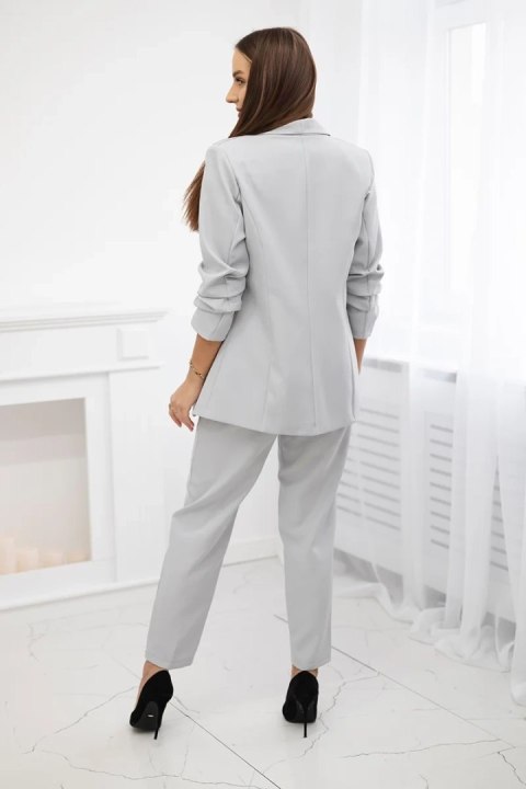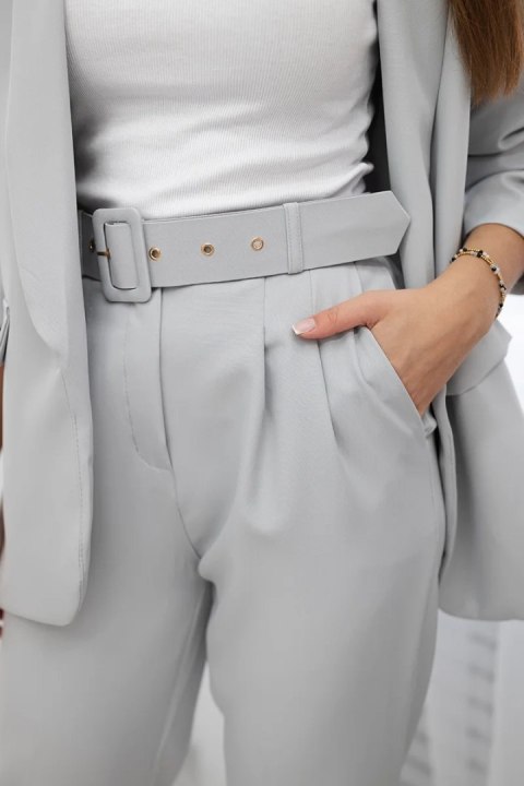 Prezentujemy Państwu elegancki komplet marynarki i spodni. Marynarka bez zapięcia z klapami z przodu. Marynarka posiada podszewkę. Spodnie z kieszeniami oraz paskiem. W pasie spodni z tyłu wszyta elastyczna taśma. Bardzo modny i stylowy komplet. Komplet wykonany jest z wysokiej jakości materiału. Rozmiar jest uniwersalny i będzie odpowiedni dla Pań w rozmiarze S, M lub L.