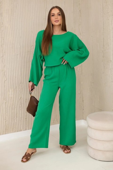 Komplet muślinowy bluzka + spodnie zielony