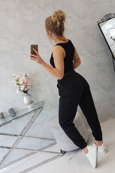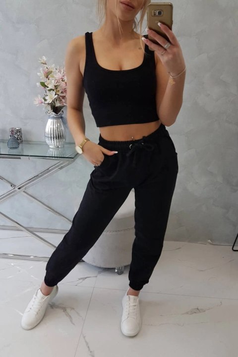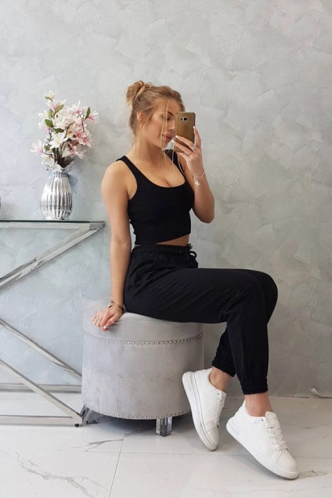 Prezentujemy Państwu komplet bluzki i spodni. Bluzka na ramiączka. Bluzka z prążkowanego materiału, spodnie gładkie. Komplet wykonany jest z wysokiej jakości materiału. Rozmiar jest uniwersalny i będzie odpowiedni dla Pań w rozmiarze S, M lub L.