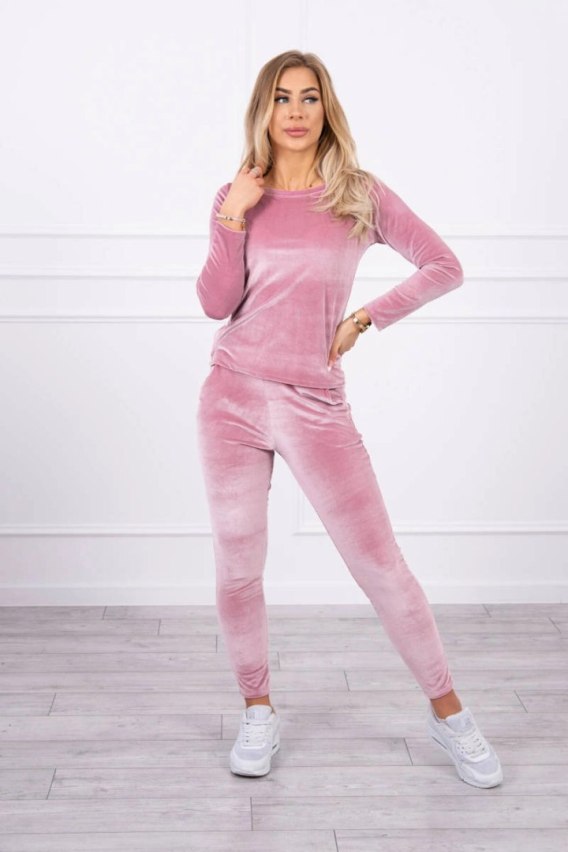 Komplet welurowy z marszczeniem z tyłu ciemny pudrowy róż