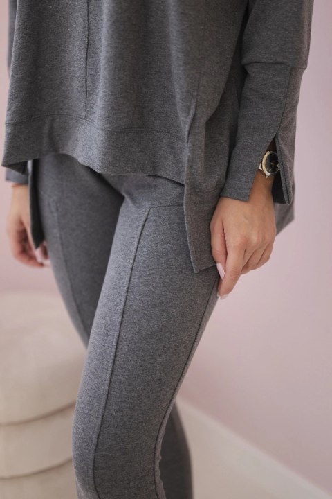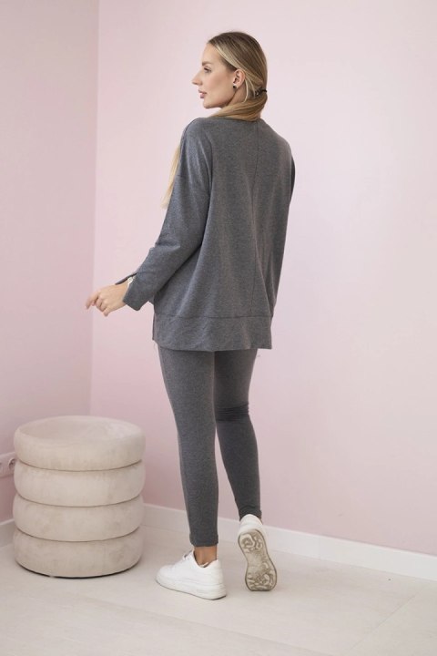 Prezentujemy Państwu komplet bluzki i spodni. Bluzka oversize z wcięciem z przodu. . Komplet wykonany z materiału wysokiej jakości. Rozmiar jest uniwersalny i będzie odpowiedni dla Pań w rozmiarze S, M lub L.