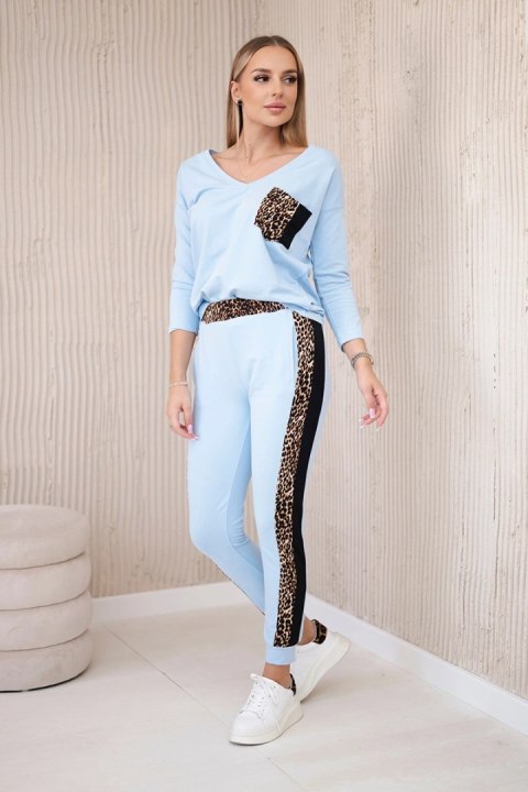 Prezentujemy Państwu komplet bluzki i spodni. Komplet posiada wstawki z motywem panterki. Bluzka z przodu z naszytą kieszonką. Spodnie posiadają kieszenie. Komplet wykonany jest z wysokiej jakości materiału. Rozmiar jest uniwersalny i będzie odpowiedni dla Pań noszących rozmiar S, M lub L.