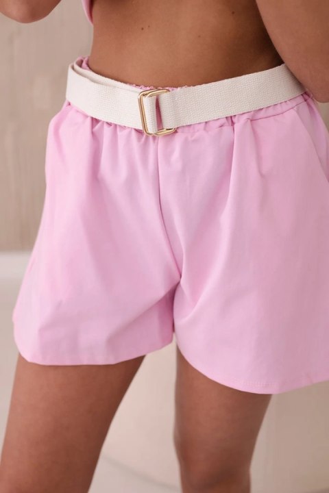 Komplet z nadrukiem new punto bluzka + spodenki jasny różowy