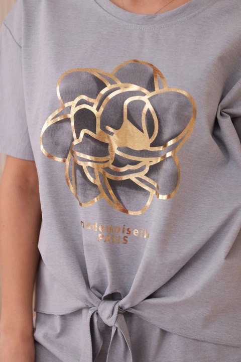 Komplet z nadrukiem new punto bluzka + spodenki szary