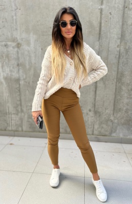 Czarne legginsy imitujące skórę to trend, który nie przemija. Doskonale pasują do długich swetrów oversize oraz luźnych koszul. Jak nosić je z klasą? Wystarczy, że zapamiętasz, że górna część garderoby powinna być dłuższy i luźny fason. Do tego ciekawe botki lub buty w militarnym stylu i bardzo stylowy look jest gotowy! Czerń to nie Twoja bajka? Spokojna głowa – znajdziesz u nas legginsy damskie w różnych kolorach, zarówno stonowanych, jak i szalonych. Wybierz ten, który najlepiej odzwierciedla Twoją osobowość.