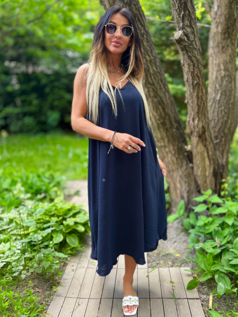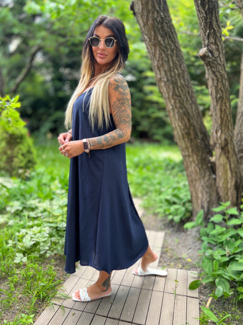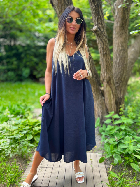 Letnia sukienka SAMANTHA | granatowy | odkryte ramiona | rozmiar uniwersalny
