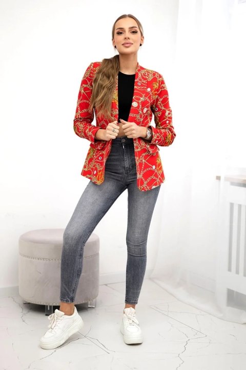 Marynarka bawełniana z kolorowym nadrukiem czerwona