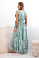 Narzutka damska bawełniana z wiązaniem w talii turkusowa