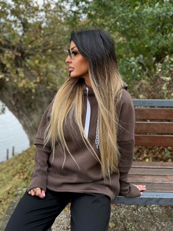 • Ocieplana bluza MARIO z kominem/kapturem | CZEKOLADA | one size | polski produkt