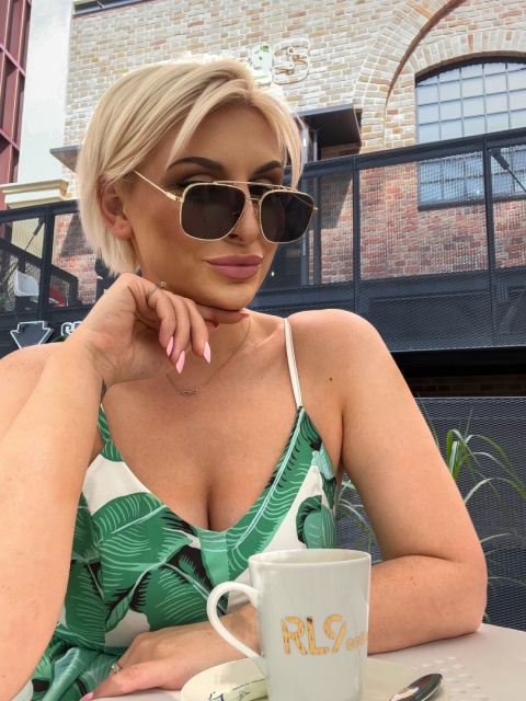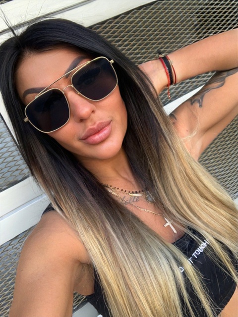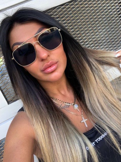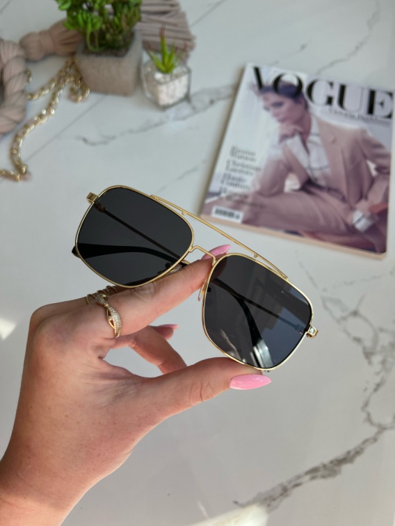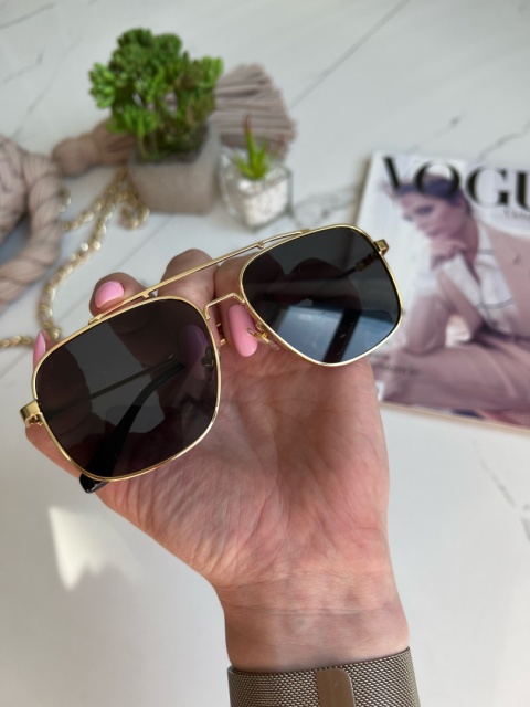 Damskie okulary przeciwsłoneczne ze złotą oprawą.