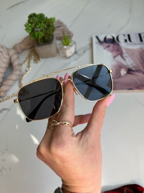 Okulary przeciwsłoneczne pilotki | JERRY | black&gold I UV 400
