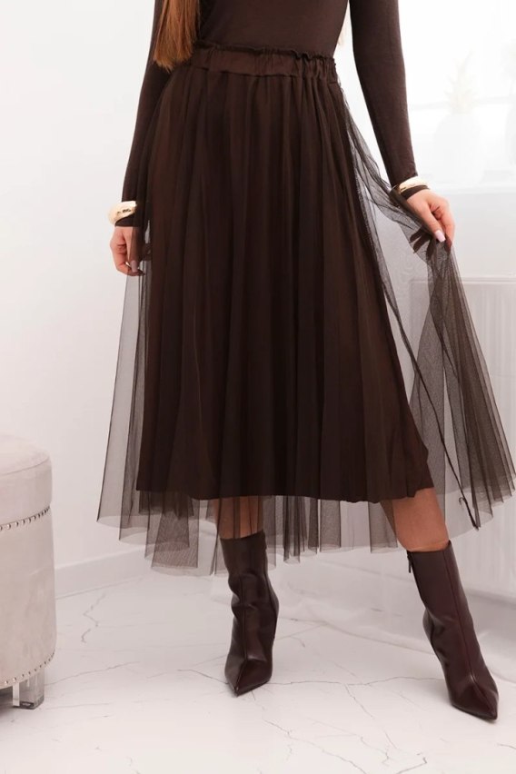 Spódnica damska tiulowa z podszewką z wiskozy brązowa